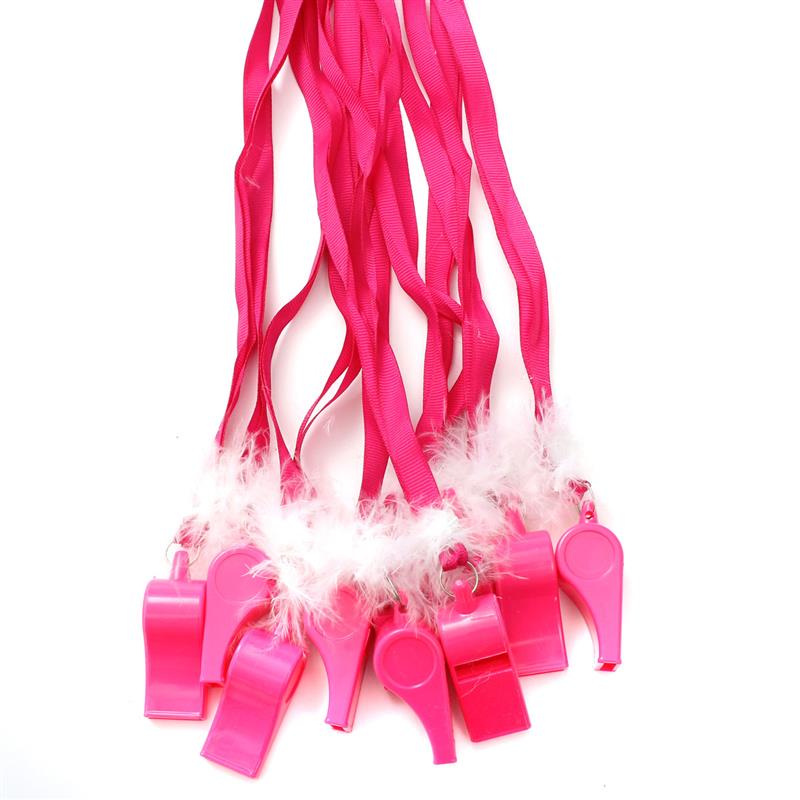10pcs Hot Pink Hen Party Fluffy Whistles with Strap
